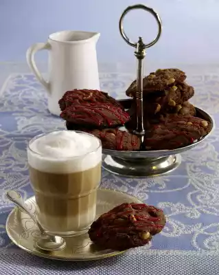 Using a tablespoon, place 10 piles of dough on 2 baking trays lined with baking paper. Bake the trays one after the other in a preheated oven (electric cooker: 200 °C/ convection oven: 175 °C/ gas: level 3) for 10-12 minutes. Remove from the baking tray, place on a grid and allow to cool. Decorate some cookies with glitter writing and let them dry for about 20 minutes