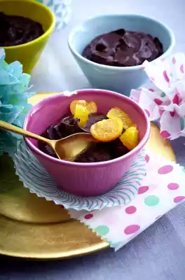 Cut the fillets a little smaller. Remove the physalis from the casings, wash and cut in half. Mix orange juice, vanilla sugar and cognac. Mix with the fruit. Arrange chocolate-peanut pudding with fruit salad.