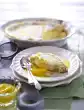 Finely chop the chocolate for the pudding. Bring milk and cream to the boil in a small pot and remove from the heat.