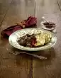 Let the fat run in while stirring. Stir in the flour mixture well with the whisks of the hand mixer. Add chocolate and pumpkin and stir in. Grease the hollows of a large pumpkin mould (2 hollows of 1250 ml) well and sprinkle with flour. Halve the dough, spread it into the hollows and smooth it down. Bake in the preheated oven (electric cooker: 175 °C/ convection oven: 150 °C/ gas: level 2) for about 50 minutes. Cover the cakes with aluminium foil about 10 minutes before the end of the baking time. Then take them out of the oven, place them on a grid and let them cool in the mould for about 40 minutes. Carefully turn out of the tin and let it cool down on a grid. Warm the jelly in a small pot and let it cool down for about 10 minutes. Spread the jelly on the smooth side of one cake, place the second cake on top to form a pumpkin. For the icing, sieve icing sugar into a bowl. Mix the icing sugar, egg white and orange juice with the whisk of the hand mixer.