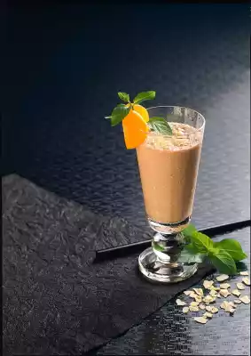 Halve 1 apricot half, cut it in half and put it on a glass rim. Put the rest of the ingredients into a blender and mix well. Pour into the glass and garnish with mint