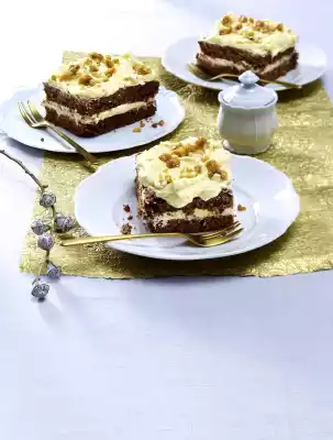Beat 500 g butter, 500 g sugar, vanillin sugar, port wine and salt until creamy. Stir in the eggs one after the other. Sieve flour, cocoa and baking powder and stir in 6 tbsp. milk briefly. Halve the dough. Spread one half of the dough evenly on a greased, greaseproof pan of the oven (approx. 32 x 38 cm) lined with baking paper. Bake in the preheated oven (electric cooker: 175 °C/ convection oven: 150 °C/ gas: see manufacturer) for 30-35 minutes. Let them cool down. Turn out the base onto a plate. Proceed in the same way with the remaining dough