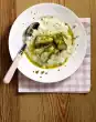 Mix egg white, sugar, flour and grated coconut well. Grease 6 hollows of a muffin tray. Press the coconut mass with wet hands against the bottom and walls of the 6 trays. Bake in the preheated oven (electric cooker: 175 °C/ convection oven: 150 °C/ gas: level 2) for approx. 10 minutes until the edges are lightly browned. Remove, allow to cool and remove from the mould. Cool down on a cake rack