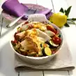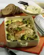 Heat 1 tablespoon of olive oil in a frying pan. Fry the tomato slices briefly in it. Season with salt and place on kitchen roll. Lightly grease the casserole dish. Layer the chopped tomato sauce and vegetables in layers. Grate Gouda finely and sprinkle over the casserole. Bake in a preheated oven (electric cooker: 200 °C/ convection oven: 175 °C/ gas: level 3) for approx. 25 minutes. Garnish with thyme twigs