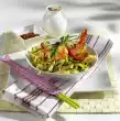 Scald apricots hot, skin, halve and stone them. Cut into small pieces if necessary. Drain the canned apricots. Clean and wash spring onions. Cut spring onions into pieces, the rest into rings.