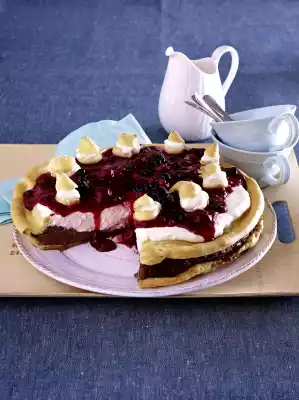 Chill for at least 3-4 hours. Before serving, spread red fruit jelly on top and decorate with tuffs.