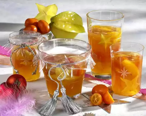 Cut out the fillets along the inner thin skins. Squeeze juice out of the parting skins. Squeeze the remaining fruit as well. Fruit pieces and juice must add up to 3/4 litres.