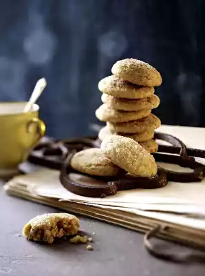 Mix white sugar and cinnamon. Shape the dough into balls the size of a walnut and turn them in the cinnamon-sugar mixture. Place the balls at a good distance from each other on 2-3 baking trays lined with baking paper. Bake in the preheated oven (electric cooker: 175 °C/ convection oven: 150 °C/ gas: see manufacturer) for 8-10 minutes (cookies are ready, even if they still feel soft!). Sprinkle with the rest of the cinnamon mixture and allow to cool. Keep well sealed in tins