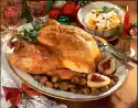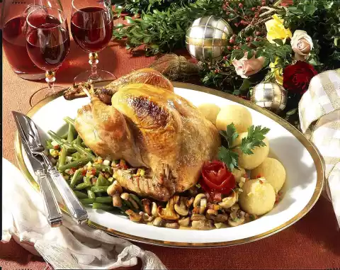 Stir in sauce thickener. Bring to the boil again briefly and season to taste. Heat the remaining fat. Drain the beans. Swivel prepared vegetable cubes and beans in it. Arrange turkey and vegetables on a plate. Serve garnished with tomato rose and parsley. Serve with dumplings