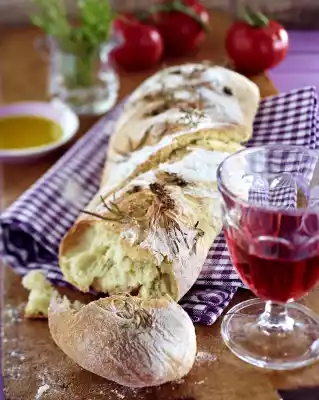Place the well-risen soft dough on a well floured work surface and cut in half (do not knead the dough, so that the air remains in the dough!) Form 2 narrow loaves of bread about 30 cm long with plenty of flour. Place them on a baking tray (32 x 39 cm) lined with baking paper. Spread the herbs on the breads and press lightly. Leave to rise for another 10-15 minutes. Bake in the preheated oven, 2nd shelf from below (electric oven: 200 °C/ circulating air: 175 °C/ gas: level 3) for about 40 minutes. Let cool down on a grill