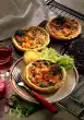 Turn the slices of bread briefly in it and take them out. Cover with fig slices and cheese. Spread salsa on top. Garnish with thyme leaves.
