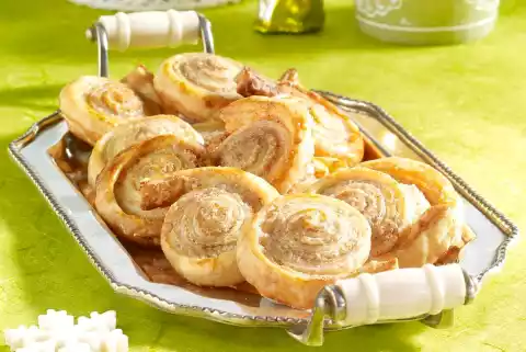 Cut into about 32 pieces. Place on 2 baking trays lined with baking paper. Whisk the egg and brush the snails with it. Sprinkle with remaining sugar mixture. Bake one after the other in a preheated oven (electric cooker: 200 °C/ convection oven: 175 °C/ gas: level 3) for 12-15 minutes.