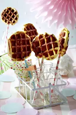 Cut the roll into 18 approx. 2 cm thick slices and put a lollipop stick in each slice. Press the slices flat with your hands.