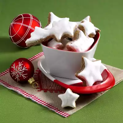 (The rest of the dough can be kneaded again and processed in the same way.) Brush the stars thickly with the beaten egg white that has been put aside. Bake the trays one after the other in a preheated oven (electric cooker: 150 °C/ convection oven: 125 °C/ gas: stage 1) for 18-20 minutes.