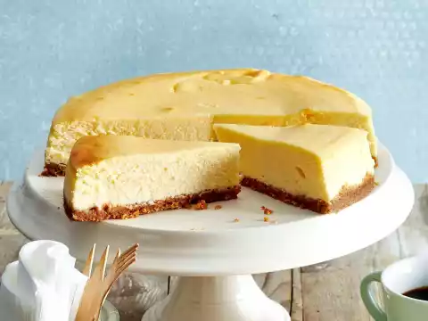 Bake in the preheated oven (electric cooker: 175 °C/ convection oven: 150 °C/ gas: see manufacturer) for approx. 1 hour until the cream hardly wobbles at all if you shake the tin slightly.