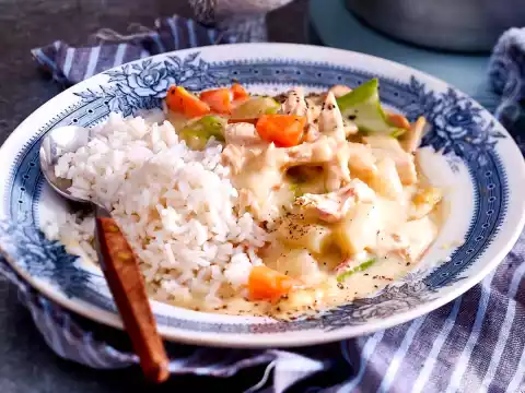 TIP: Alloying is a method to round off sauces perfectly. It improves the binding, refines the taste, gives shine and a beautiful colour. For this, whisk 2 fresh egg yolks and 200 g whipped cream (alloying). Stir in approx. 3 tbsp. warm fricassee sauce bit by bit to equalise the temperatures. Stir the alloy slowly into the fricassee. Heat briefly, but do not bring to the boil again, so that the egg yolk does not curdle! For this reason, reheat fricassee leftovers only at low to medium heat, stirring occasionally.