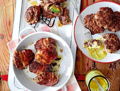 Finished meatballs can be eaten immediately with mustard, as with mummy's fine with boiled potatoes and mixed vegetables or clamped hipsterlike between two Burger Buns and clean with it. Three times vol