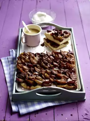 Grease the oven pan (32 x 38 cm) and roll out the dough in it. Mix nuts, cinnamon and 4 tablespoons of sugar and sprinkle evenly on the dough. Spread plums on the dough with the open side facing upwards. Bake in the preheated oven (electric cooker: 175 °C/ convection oven: 150 °C/ gas: level 2) for approx. 30 minutes. Take the finished cake out of the oven, sprinkle with sugar crystals and let it cool down. Cut the cake into pieces and serve. Whipped cream tastes good with it