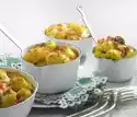 Peel and wash the potatoes and cut them into cubes of about 2 cm. Peel onions and cut into cubes. Heat the fat in a pot, fry the onion cubes in it. Add potato cubes and bay leaf, add 750 ml broth and bring to the boil. Simmer the potatoes for about 20 minutes over a mild heat