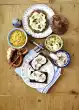 Mix the egg yolks and sugar with the whisk of the hand mixer until creamy. Add mascarpone by the spoonful and stir until smooth. Halve the biscuits. Mix espresso and liqueur. Soak half of the biscuits in the liquid and put 4 halves each on the glass bottoms.
