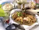 Clean, wash and cut the soup greens into large pieces. Peel and quarter onions. Wash chicken wings and pat dry. Boil the vegetables, chicken wings, peppercorns and bay leaf in 1 litre of salted water and cook over a mild heat for about 1 hour.