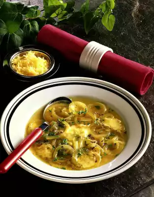 Wash parsley, chop finely and add. Grate cheese finely and sprinkle over hot soup before serving.