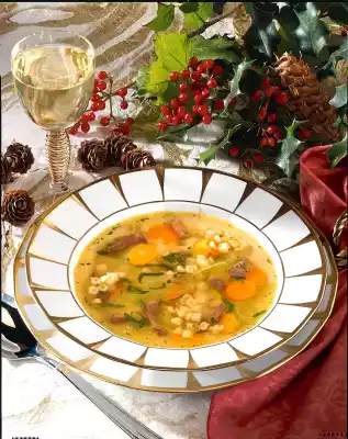 Clean and wash the soup greens and finely dice the celery, slice the carrots and cut the leek into rings. Cut off the offal into cubes. Bring chicken stock to the boil, add vegetables, offal and noodles and cook for about 15 minutes. Season with salt and pepper. In the meantime wash parsley, dab dry and cut into strips. Serve the soup sprinkled with the parsley in a deep plate