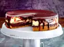Whip 400 g cream until stiff, halve the amount. Stir the rest of the raspberry puree into one half. If the colour should be stronger, stir in some food colouring. Remove the cake from the ring. Pour white cream into a piping bag without a spout.