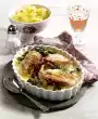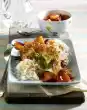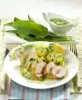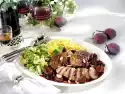 Pour broth through a sieve and bring to the boil. Add the rest of the leek and plums and simmer for another 15 minutes. Remove chicken meat from skin and bone and cut into bite-sized pieces.