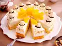Remove the cake from the cake ring and spread the rest of the cream all around. Refrigerate the cake for another 2 hours. Decorate the cake with the pineapple slices before serving.