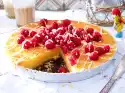 Mix cream, 150 g sugar and grated coconut with a whisk and chill. Take the cake out of the tin, let it cool down for about 30 minutes, remove from the tin and let it cool down on a cake rack.