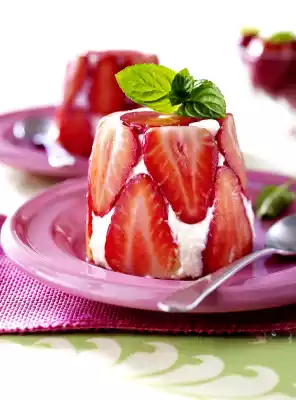 Rinse 4 moulds (each approx. 150 ml) with cold water. Line the bottom and walls of the ramekins with strawberry slices and press on. Pour in the coconut cream and cover and leave to cool for approx. 4 hours. Hold the ramekins briefly under hot water and turn the cream out onto plates.