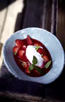 Remove the ice cream 10-20 minutes (depending on room temperature) before serving and let it thaw. Arrange the soup on plates. Use two tablespoons to prick off the noodles and add to the strawberry soup. Refreeze remaining ice cream