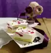 Use a peeler to remove small rolls from the chocolate. Mix the pudding, fill into 4 glasses (each with a capacity of approx. 200 ml) and sprinkle chocolate rolls over them. Place 1 pineapple skewer on each glass. Spread the pineapple salad on 4 plates, place glasses on top