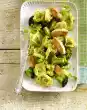 Peel and quarter the pineapple, cut out the stalk. Cut 1/2 of the pineapple into pieces of the same size (approx. 1 x 1 cm) and put them on 4 wooden skewers (approx. 10 cm each). Cut the rest of the pineapple into small cubes. Stir in 1 tbsp. sugar, 1 tsp. lime juice and lime zest