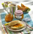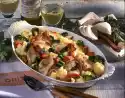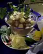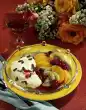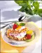 Melt 20 g sugar in a small pot and caramelise until golden. Add butter and oat flakes, mix and place on a piece of oiled aluminium foil. Let it cool down. In the meantime wash the strawberries, drain well and clean them. Halve or quarter the strawberries. Drain the apricots, cut into slices and add to the strawberries.