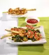 Mix salad pieces and carrots. Arrange on salad leaves. Pour yoghurt sauce over them. Serve fish with mustard sauce and potatoes. Garnish with lemon if desired.