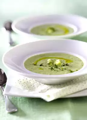 Finely chop the remaining dill. Core the remaining cucumber, cut into small cubes and mix with the remaining dill. Arrange soup in plates or glasses, put cucumber mixture in the middle. Sprinkle each soup with about 1 teaspoon of oil and serve. Bread tastes good with it
