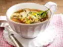 Finely mash cucumber pieces, spring onions, dill, garlic, yoghurt, lemon juice, cumin and stock in a blender, season with salt and pepper. Cover and chill for approx. 2 hours.