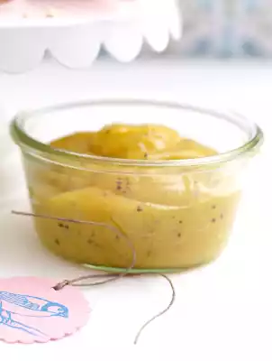 Peel the kiwis, weigh 100 g of flesh and cut into small pieces. Peel the mango, cut the flesh off the stone, weigh 125 g and chop finely. Puree the kiwi and mango pulp, lime juice and jam sugar in a high mixing bowl with a hand blender for approx. 45 seconds.