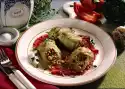 Blanch for two minutes in boiling salted water, quench and drain. Wash the savoy cabbage leaves and blanch for five minutes, rinse in cold water and drain. Cut the leaves in half along the stem and roll them up.