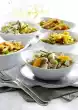 Put them on the fat pan of the oven. Bake in the preheated oven (electric cooker: 200 °C/ convection oven: not suitable/ gas: level 3) for approx. 30 minutes. Season the fillet pieces with salt and pepper and also brush with the marinade. After half of the baking time, spread on the fat pan and bake until done. Brush with the remaining oil from time to time. Wash the raisins and drain well. Coarsely chop the peanuts. Mix peanuts, except for 1 tablespoon, and raisins into the salad. Season the salad to taste. Sprinkle remaining peanuts on the chicken. Serve garnished with mint