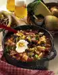 Add everything to the white beans. Add broth and thyme, bring to the boil and cook for another 15 minutes. Cut bread into small cubes. Wash parsley, shake dry and chop. Heat garlic butter in a pan. Fry the bread cubes and parsley until the bread is golden brown. Season bean pot with salt and pepper and arrange on plates with bread cubes and parsley