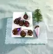 For the locomotive, prepare 12 ladyfingers and glue 2 of each on top of each other with icing. Put 2x3 pairs next to each other and glue them together. Then join the two blocks of three lengthwise to form blocks of 6