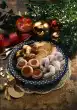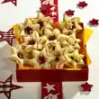 For the tender, place only 3 double ladyfingers next to each other and stick 4 Bahlsen butter cookies on top. Glue the edge of the butter biscuits
