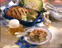Layer vegetables and puree in a greased casserole dish. Add the fat in flakes and breadcrumbs. Bake in the preheated oven (electric oven: 200 °C/circulating air: 175 °C / gas: level 3) for approx. 15 minutes. Sprinkle with parsley