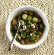 Peel and chop the onion and sauté in hot oil. Fry the vegetables. Add 300 ml water, stir in broth. Simmer covered for 8-10 minutes