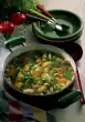 Sprinkle in poultry stock and deglaze with 3/4 litres of water. Simmer at low heat for about 30 minutes. During the last 10 minutes add some more water if necessary, fold in olives. Cut the fillet into slices and heat them up.