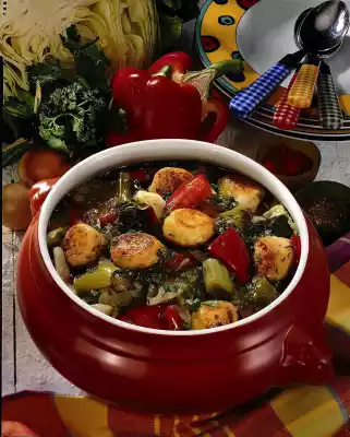 Wash the potatoes and cook for about 20 minutes. Clean, wash and chop the vegetables