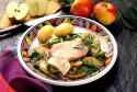 Drain and let it cool down. Wash apple, quarter it, remove core. Cut apple into slices and sprinkle with lemon juice. Clean, wash and drain the salad. Arrange turnip, celery and frisée on a plate.